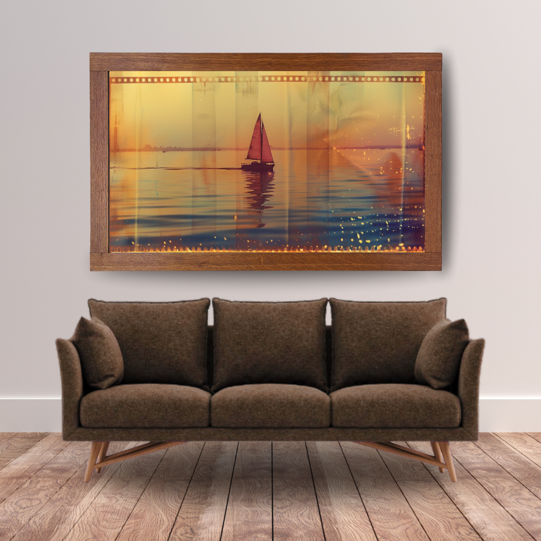 The sailboat becomes a focal point not through scale, but through contrast: a single presence against a vast, open field. The image evokes reflection, solitude, and the emotional space between departure and arrival. It is less about destination, and more about the feeling of being suspended within a moment.